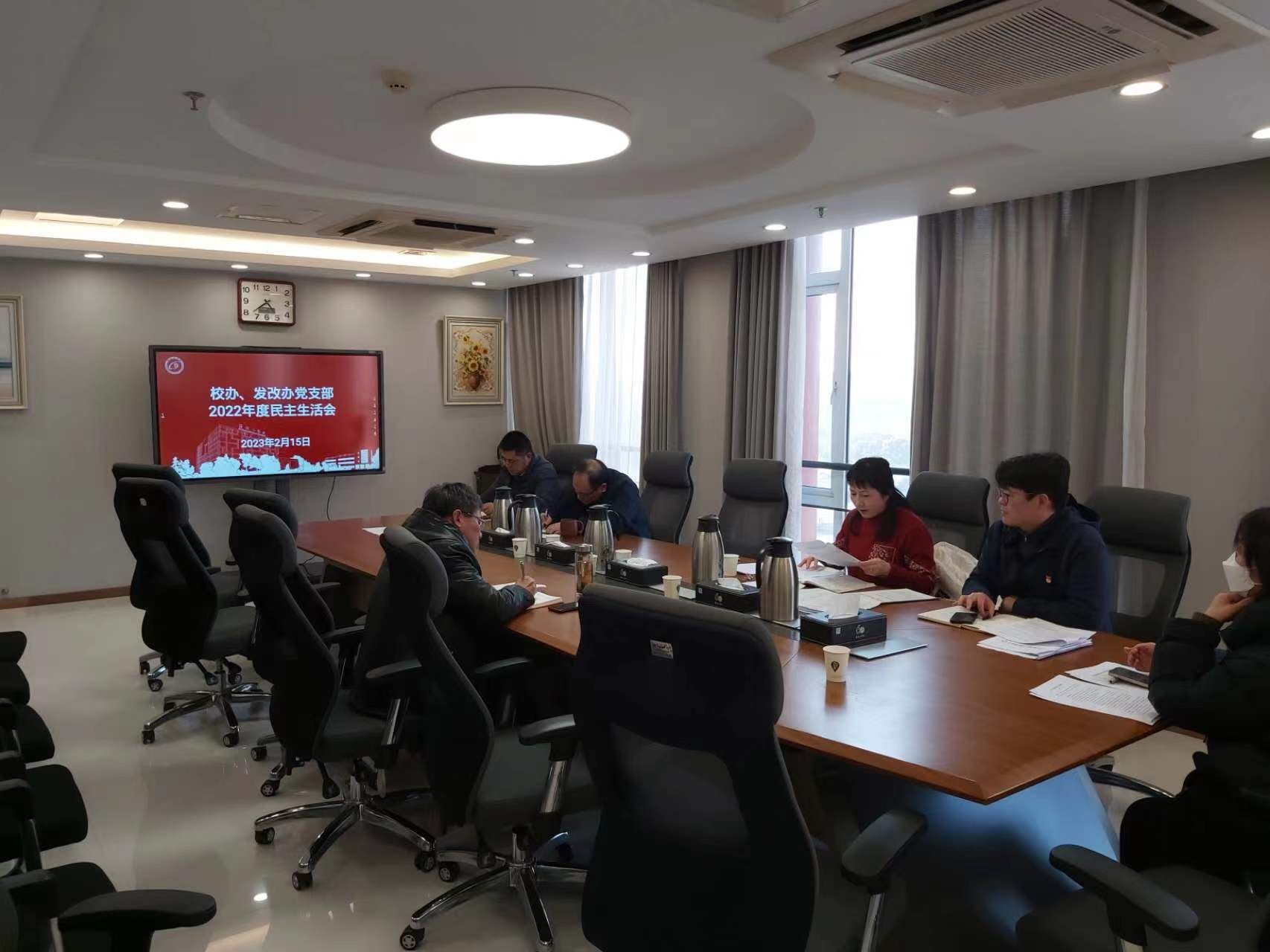 2月15日下午,校办、发改办党支部在行政楼802会议室召开2022年度民主生活会,支部书记宋青主持会议,全部处级干部参会。