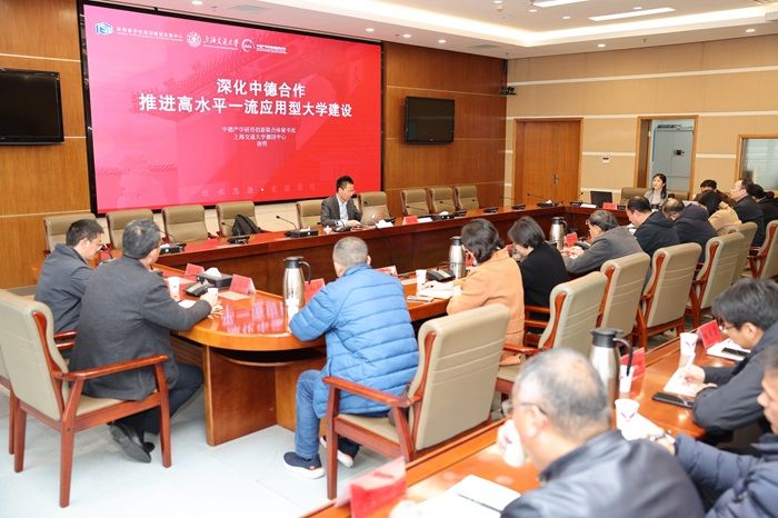 邵荣对唐明教授一行表示热烈欢迎,简要介绍了学校的发展历程、办学特色及成效。他希望以此次交流为契机,加强与中德产学研用联合体和德国应用科技大学的交流和合作,在应用型大学的人才培养、专业建设、教育教学改革、师资队伍建设、国际科研合作等方面紧密合作,不断提升应用型人才培养质量和服务地方经济社会发展的能力。