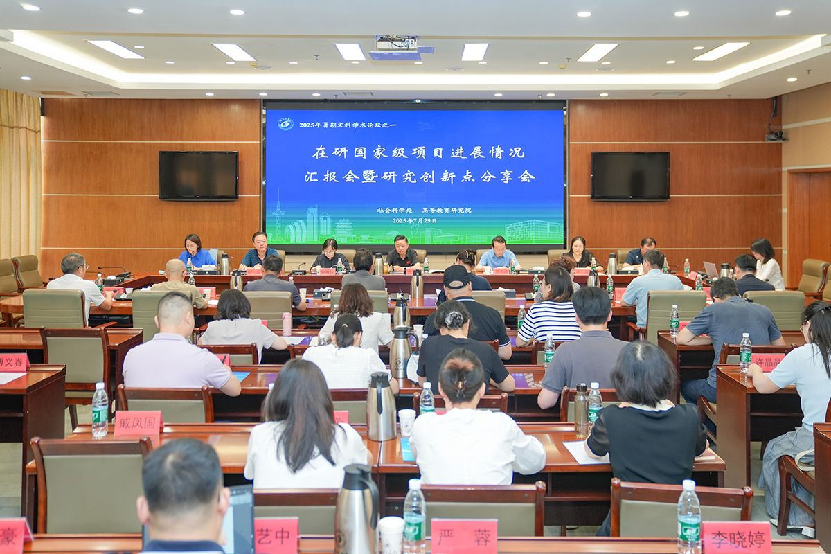 为进一步营造我校人文社科学术氛围,搭建校内外专家、学者间的学术交流平台,促进思想碰撞和交流互鉴,提升文科教师的科研能力和水平。7月29日全天,学校在希望大道校区行政楼9楼视频会议室举办2025年暑期文科学术沙龙第一阶段论坛――在研国家基金项目进展情况汇报会暨研究创新点分享会、校内教育学博士论坛。校党委副书记薛浩出席并致辞。教育科学重大项目完成人、南京师范大学教育科学学院博士生导师胡建华教授,曾经担任过社科处长的校党委常委、组织部部长包雅玮研究员和盐城师范学院教务处处长易高峰教授担任点评专家,文科学院科研负责人、文科国家级、省部级在研项目负责人及团队成员、校内教育学博士、对文科科研感兴趣的老师、研究生代表和社科处、高教院全体人员100多人参加论坛。论坛分别由社科处副处长焦微玲、高等教育研究院院长宋青主持。